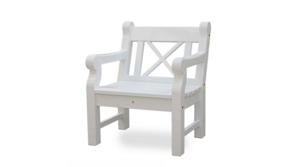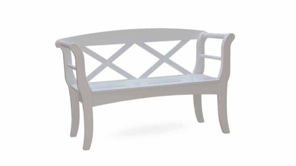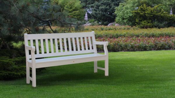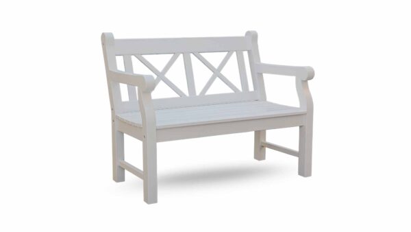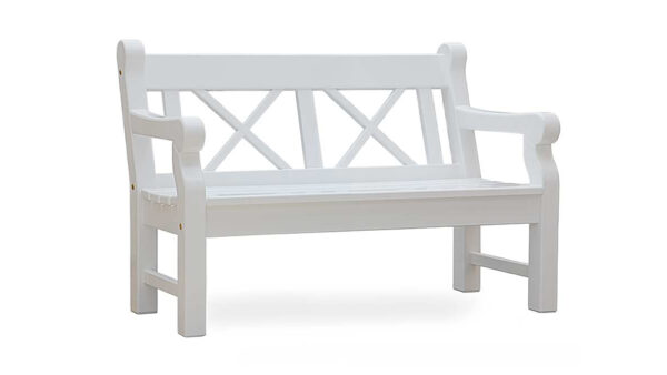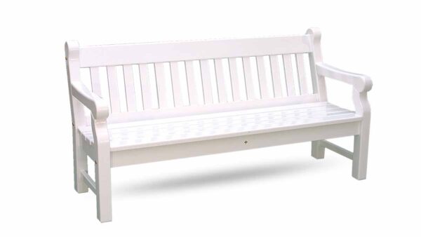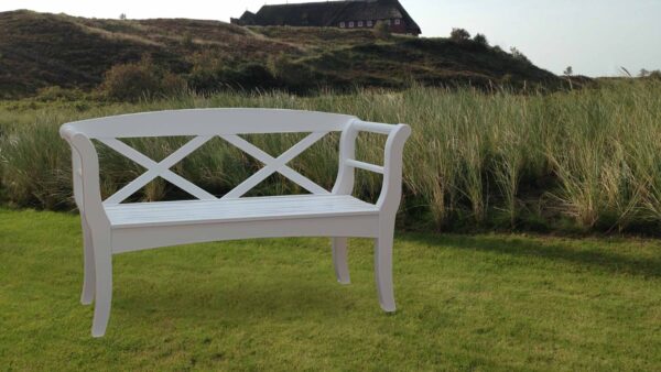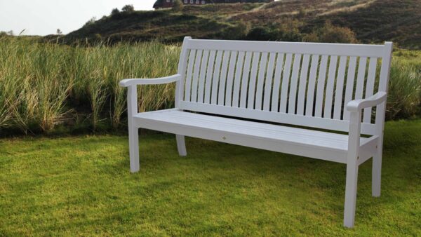 Gestalten Sie Ihren Lieblingsplatz im Grünen mit einer weißen Friesenbank.