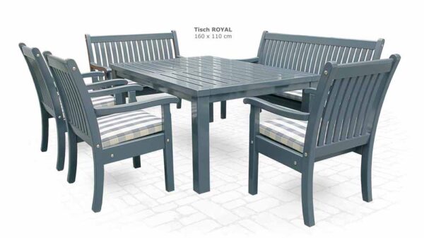 Serienmäßig sind die Gartenbänke in natur, weiß, tannengrün, anthrazitgrau, mahagonibraun und zementgrau lieferbar. Auf Wunsch auch in weiteren Farben erhältlich.